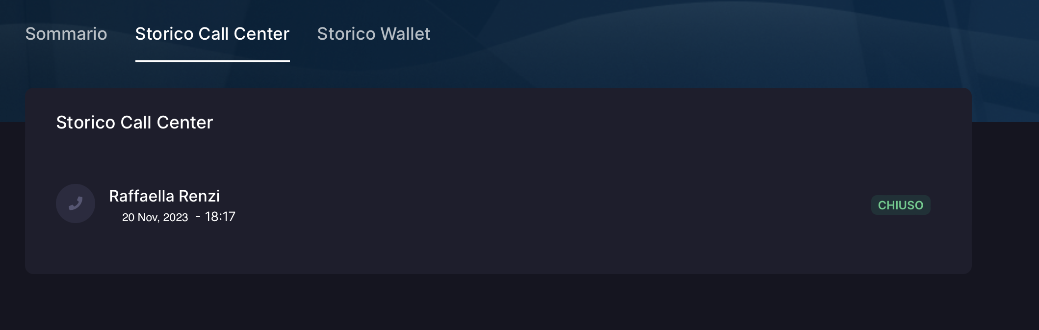 Caricata la pagina , entra nella sezione dedicata chiamata " Storico Call Center" , potrai vedere il numero di telefonate che il call center ha effettuato e cosa effettivamente è successo.