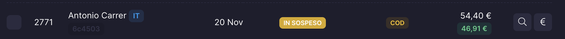 Lo stato ordine "In Sospeso" viene utilizzato per indicare tutti gli ordini che NON sono stati evasi , quindi non spediti dal magazzino di Widrop a causa del fondo insufficiente all'interno del wallet di Widrop.