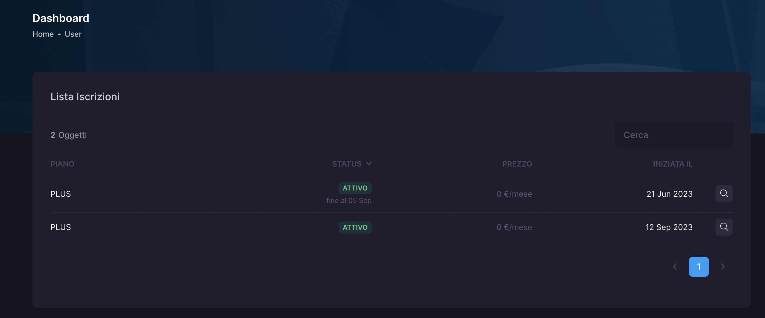 Come prossimo step, seleziona il piano in abbonamento che hai intenzione di gestire , per farlo clicca sulla lente di ingrandimento posta a destra nel piano :