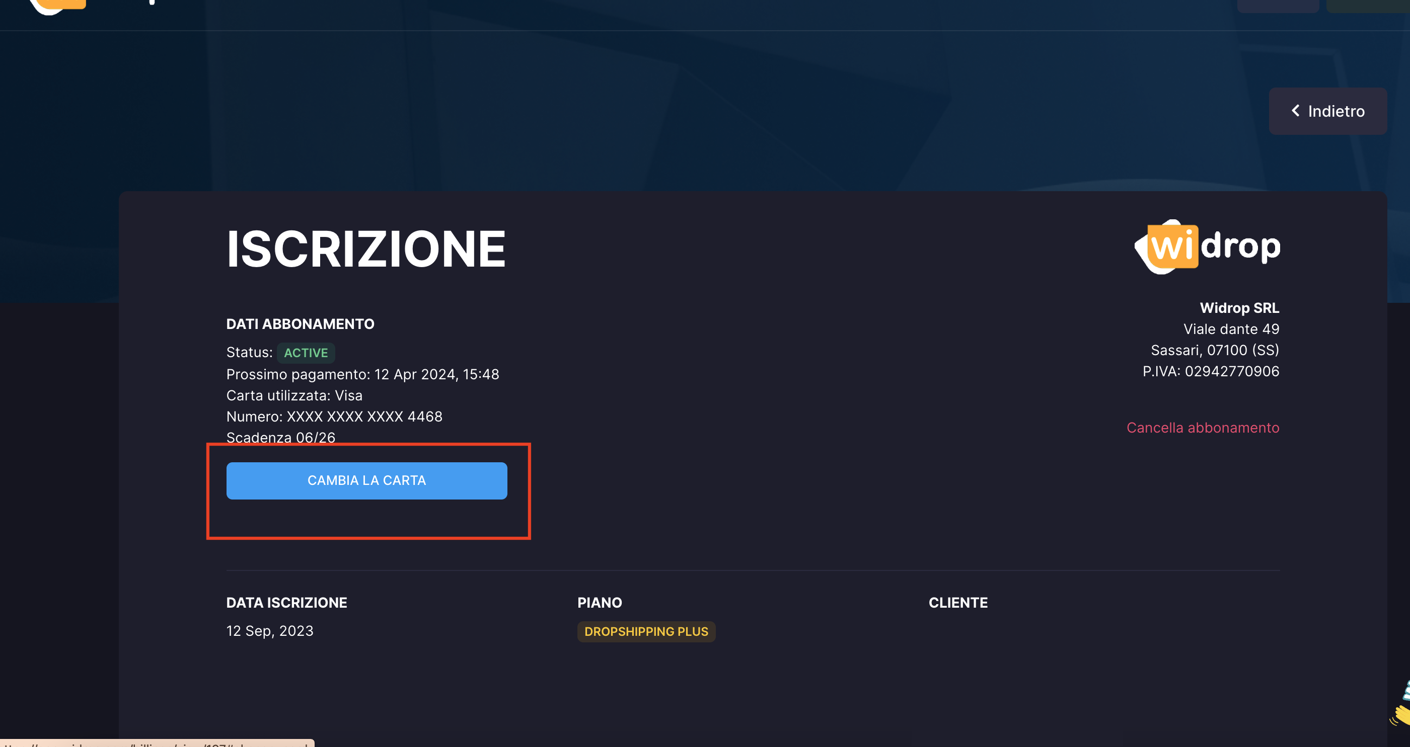 Cambiare il metodo di pagamento in Widrop è molto facile.