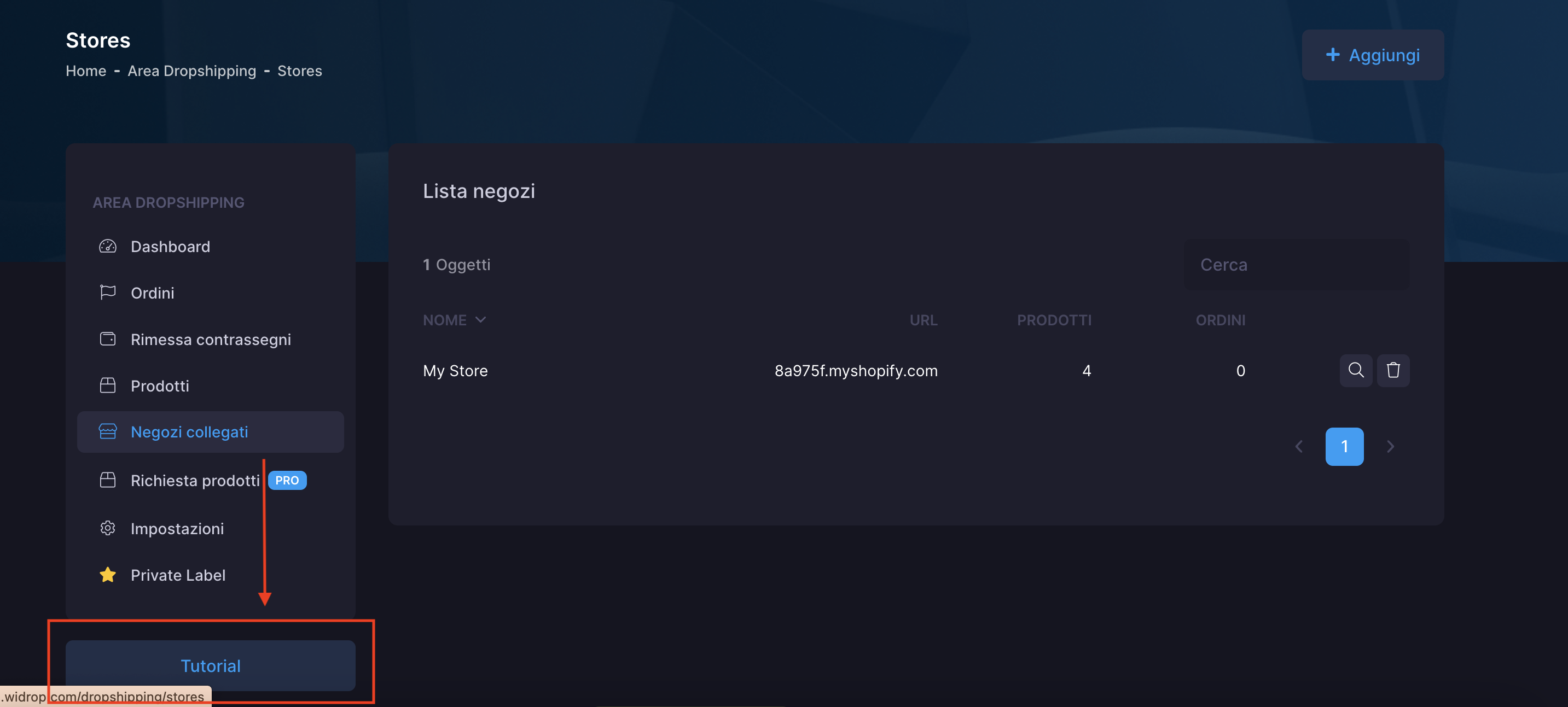 Per rendere questo tutorial più semplice abbiamo realizzato una video guida che puoi trovarla cliccando il bottone "Tutorial" all'interno della sezione "Negozi collegati"