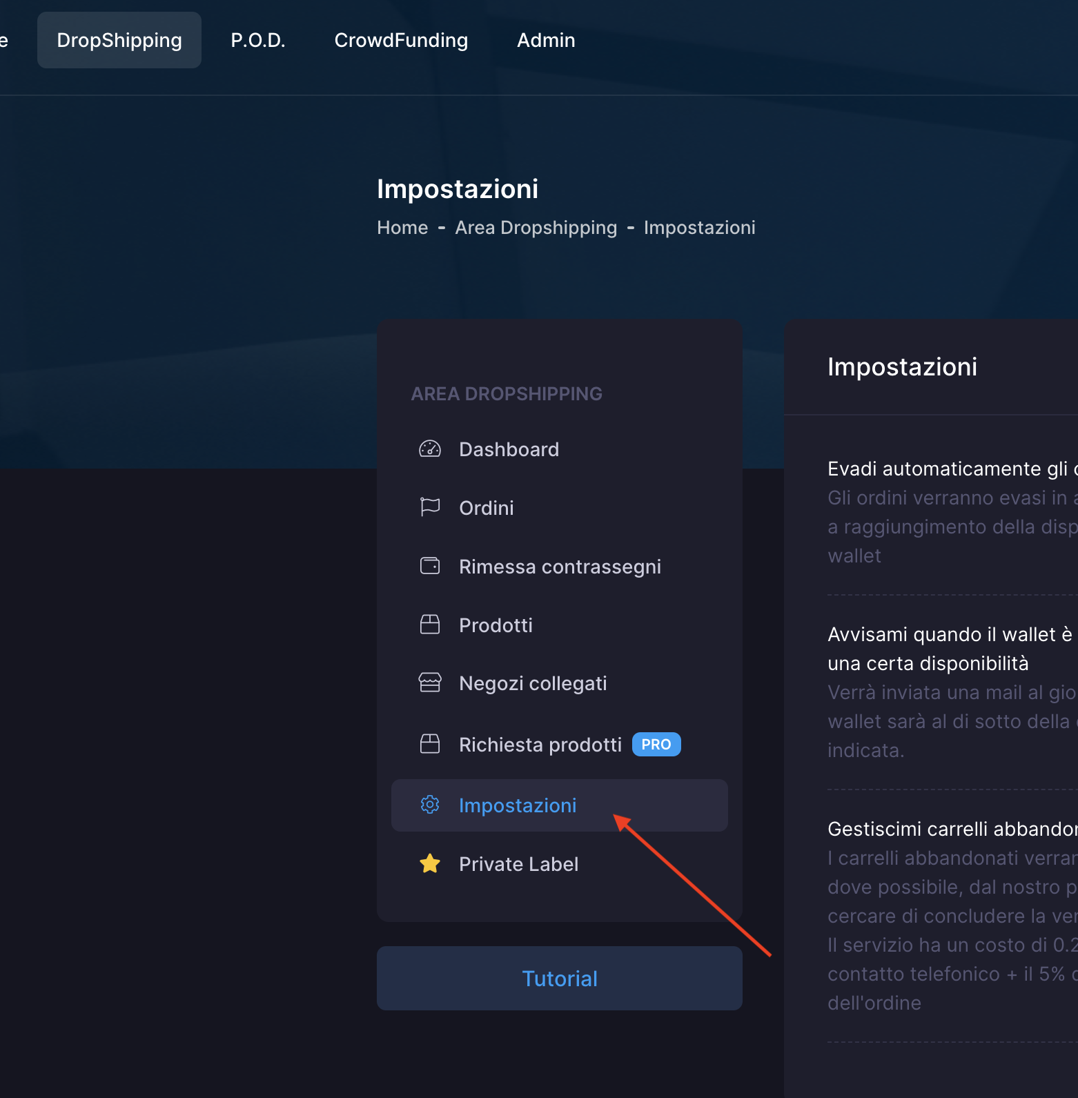 Per poter usare correttamente questa funzione è importante avere il wallet con un piccolo fondo inserito, questo eviterà il blocco delle spedizioni.