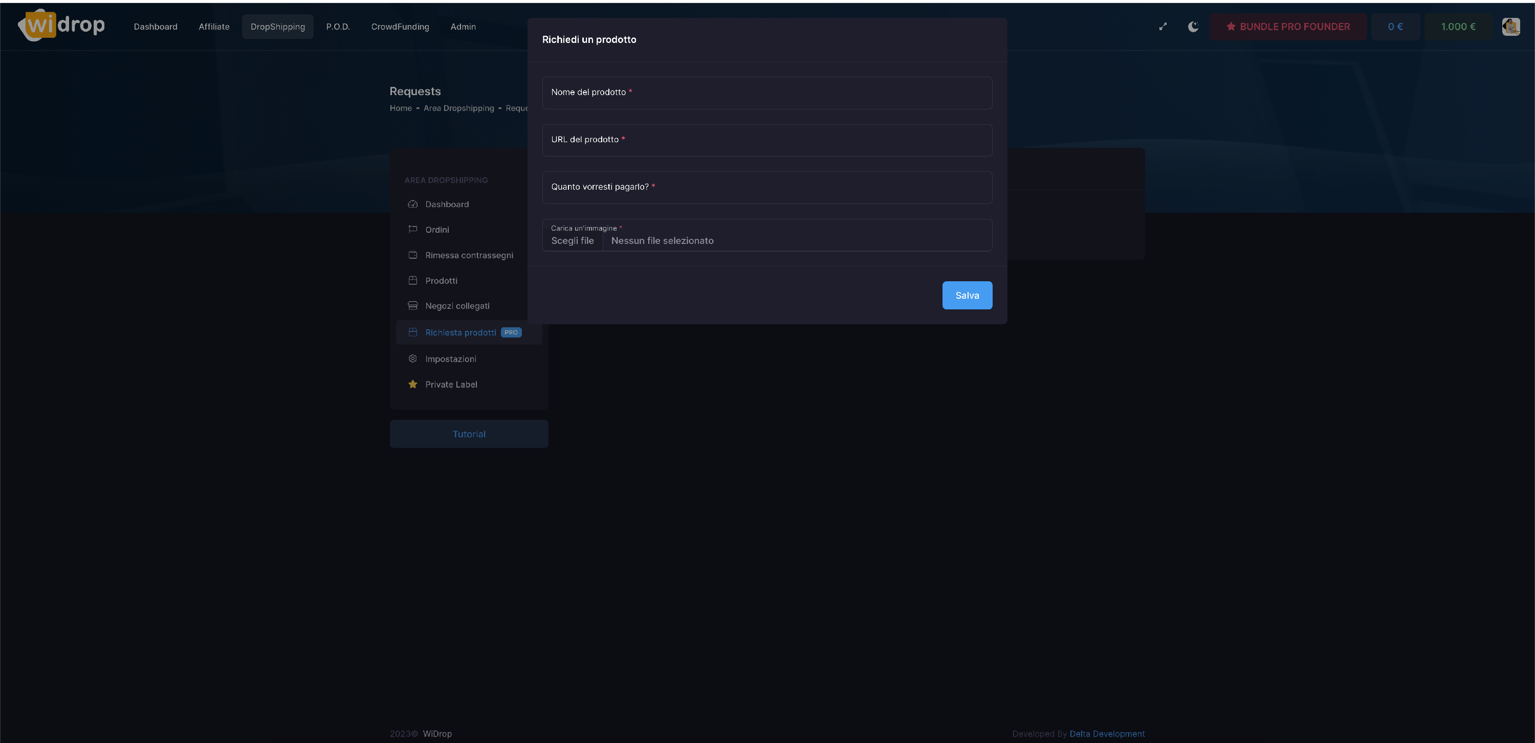 La richiesta prodotto dentro la piattaforma di Widrop è uno step fondamentale per poter lavorare con i prodotti desiderati.